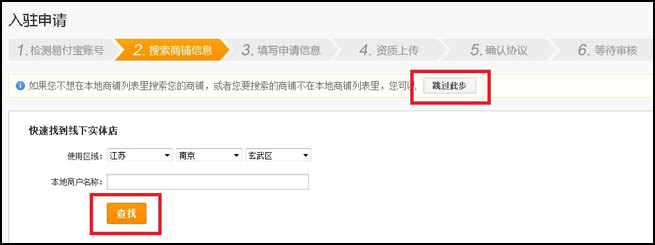 3、搜索商铺信息 ,找到您的线下实体店。提示:你也可以选择不搜索,跳过此步。