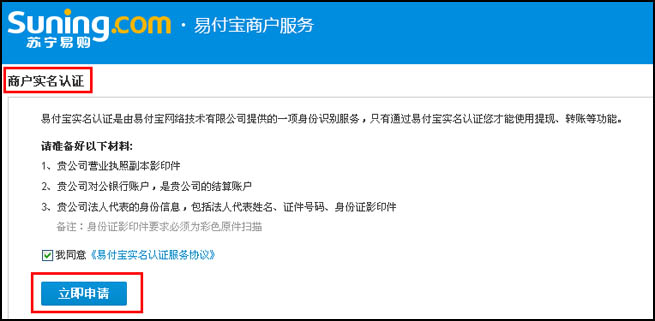 3) 商户务必确保申请入驻及后续经营阶段提供的相关资质的真实性(若提供的相关资质为第三方提供,如商标注册证、授权书等,请务必先行核实文件的真实有效性),一旦发现虚假资质,您的公司将被列入非诚信客户名单,苏宁易购将不再与您进行合作,并依据合同追究您的法律责任。